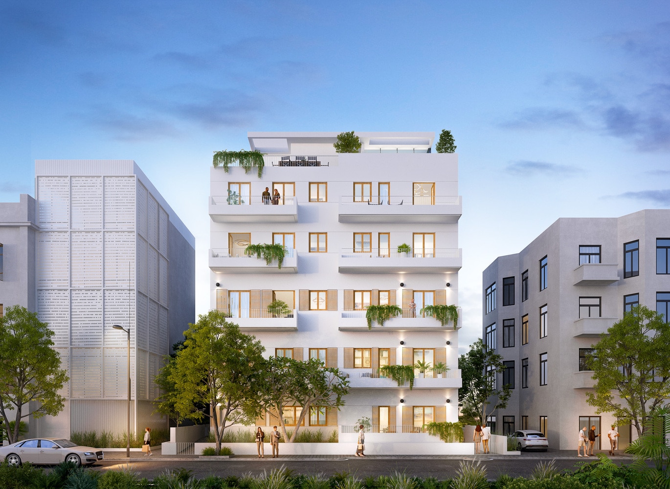 קומת קרקע (מסחר), 4 קומות טיפוסיות וגג בנסיגה